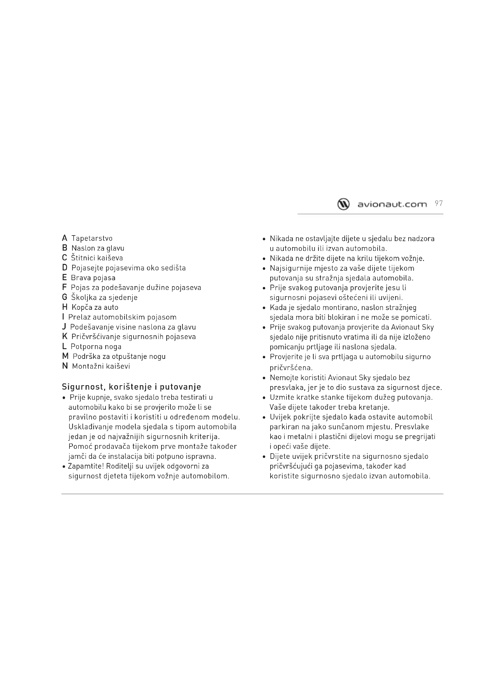 - Nemojte koristiti Avionaut Sky sjedalo bez presvlaka, jer je to dio sustava za sigurnost djece.