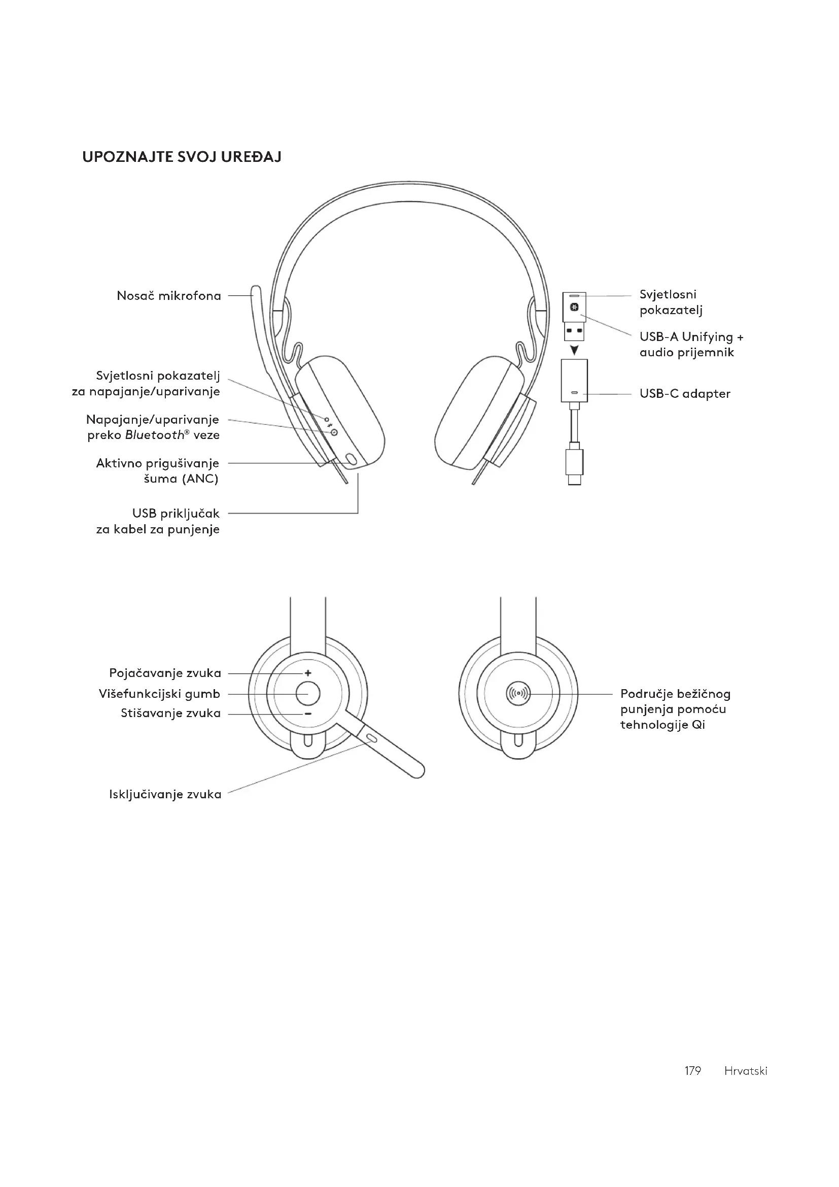 svijetlit će bijelo. Napajanje 180 HrvatskiUPARIVANJE SLUŠALICA, TIPKOVNICE I MIŠA PUTEM USB PRIJEMNIKA