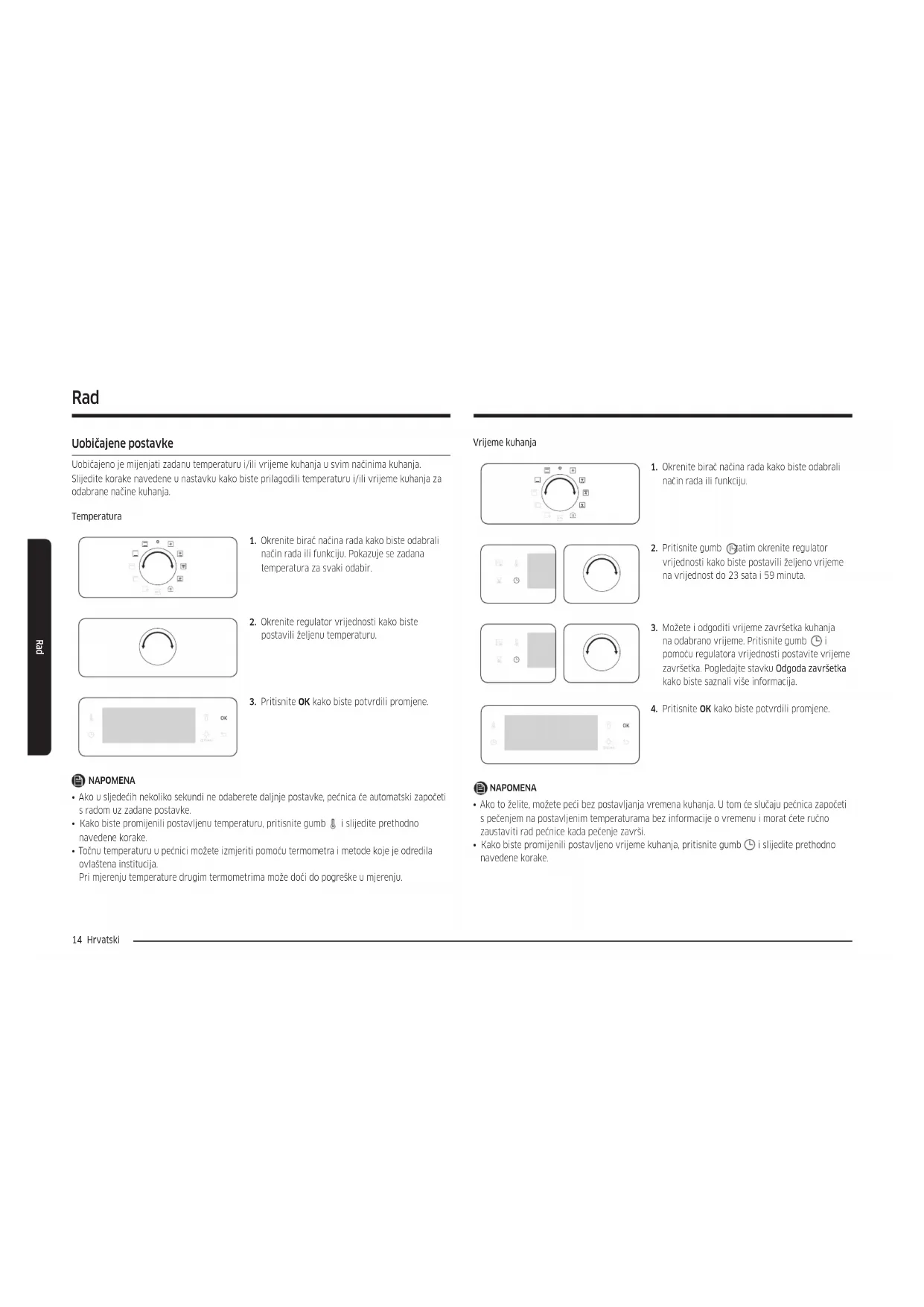 - Točnu temperaturu u pećnici možete izmjeriti pomoću termometra i metode koje je odredila ovlaštena institucija. Pri mjerenju temperature drugim termometrima može doći do pogreške u mjerenju.Hrvatski 15 Rad Vrijeme završetka