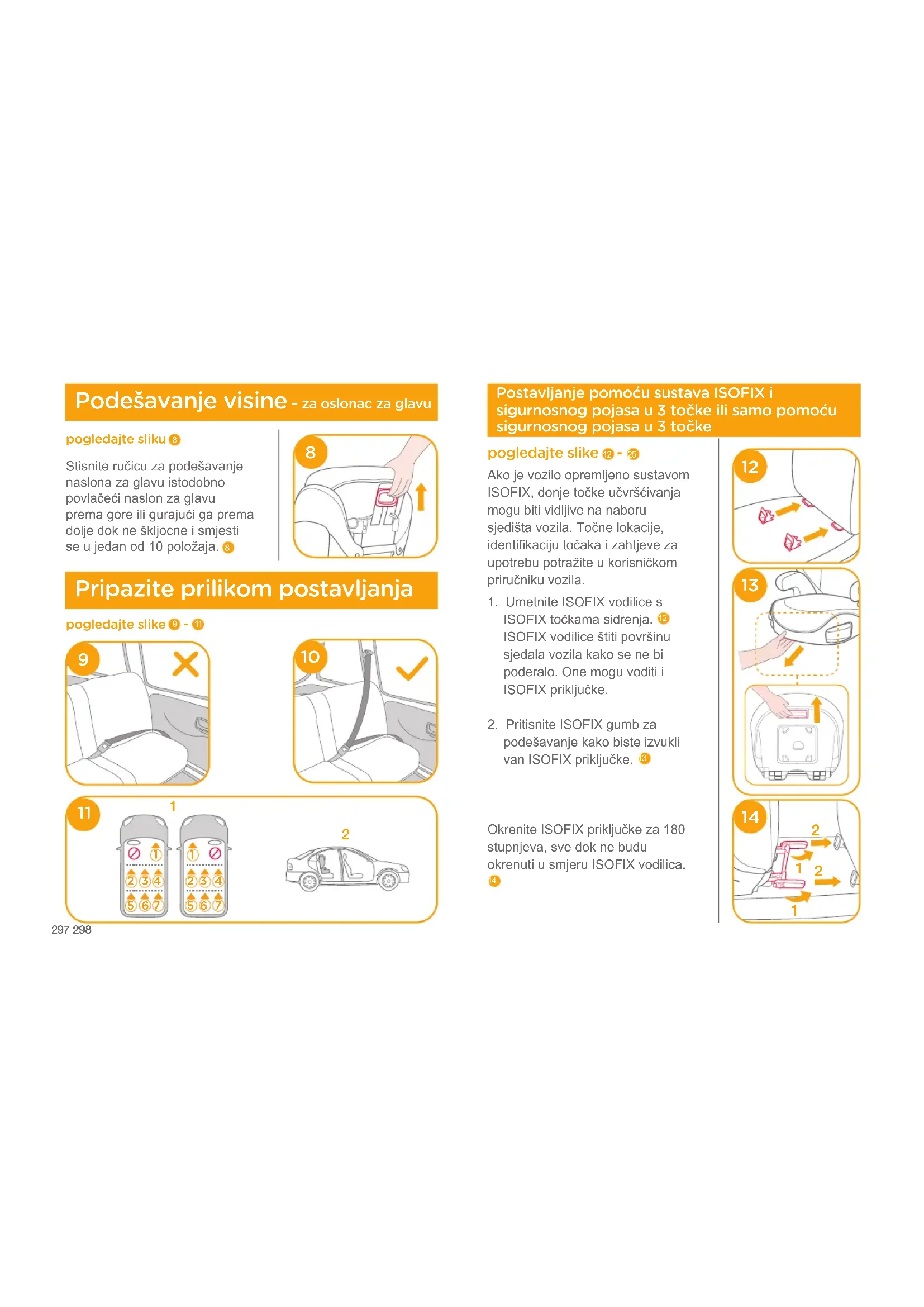 Postavljanje pomoću sustava ISOFIX i sigurnosnog pojasa u 3 točke ili samo pomoću sigurnosnog pojasa u 3 točke