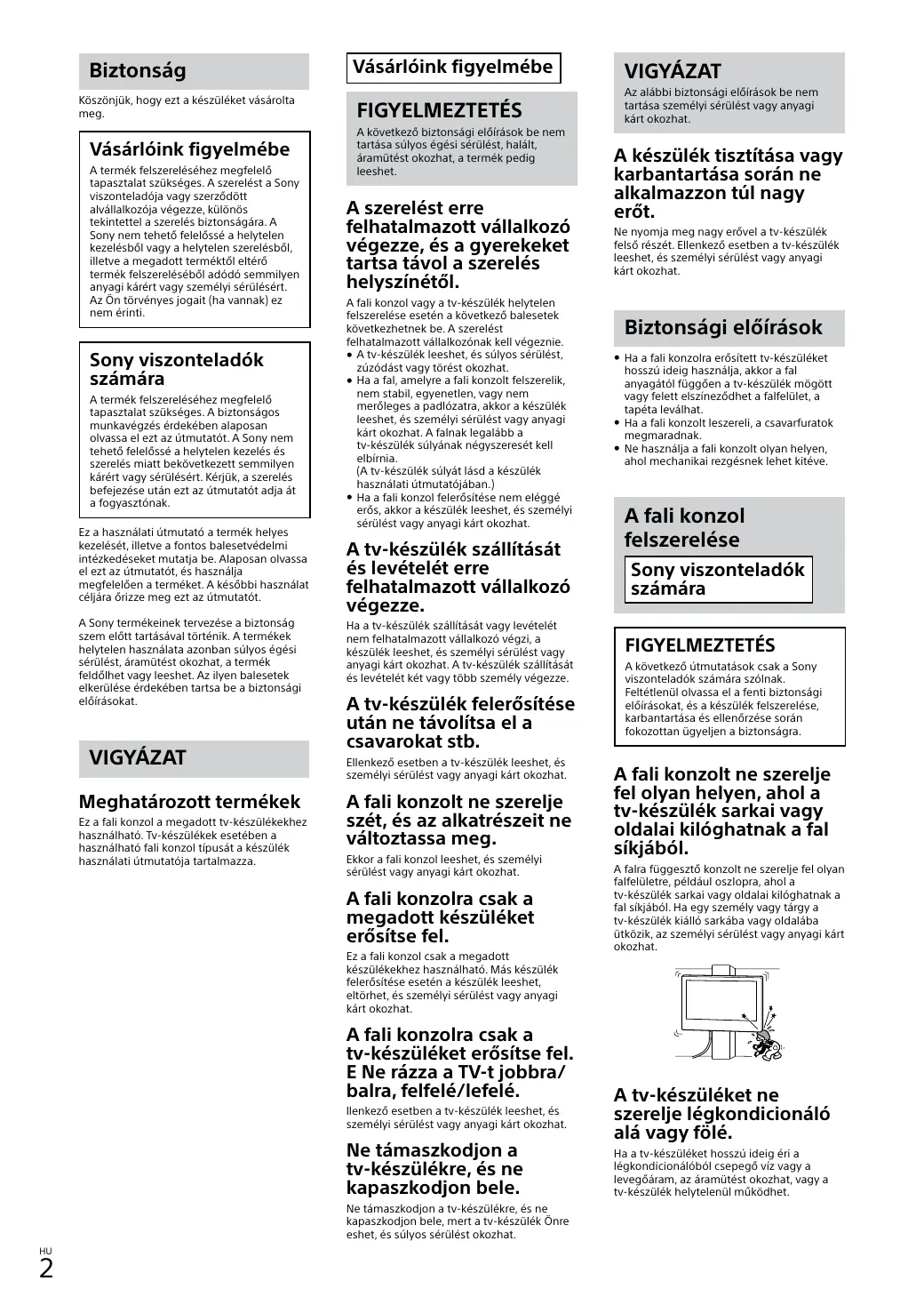 Téléchargez la notice de votre TV fali tartó au format PDF gratuitement ! Retrouvez votre notice SU-WL450 - SONY et reprennez votre appareil électronique en main. Sur cette page sont publiés tous les documents nécessaires à l'utilisation de votre appareil SU-WL450 de la marque SONY.