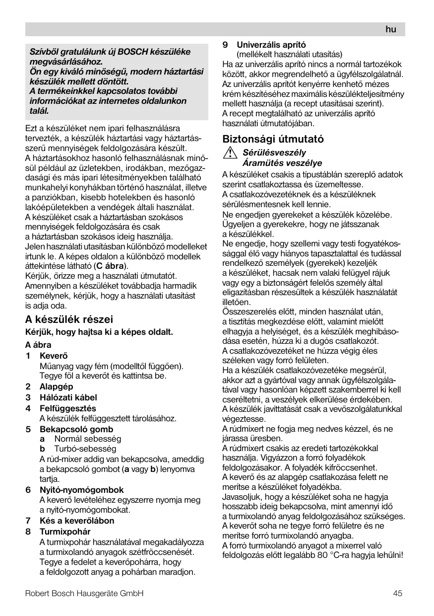 HASZNÁLATI ÚTMUTATÓ MSM7251, MSM7400 BOSCH