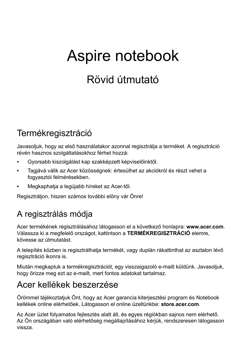 ASPIRE V5-171 - Laptop ACER - Ingyenes használati útmutató
