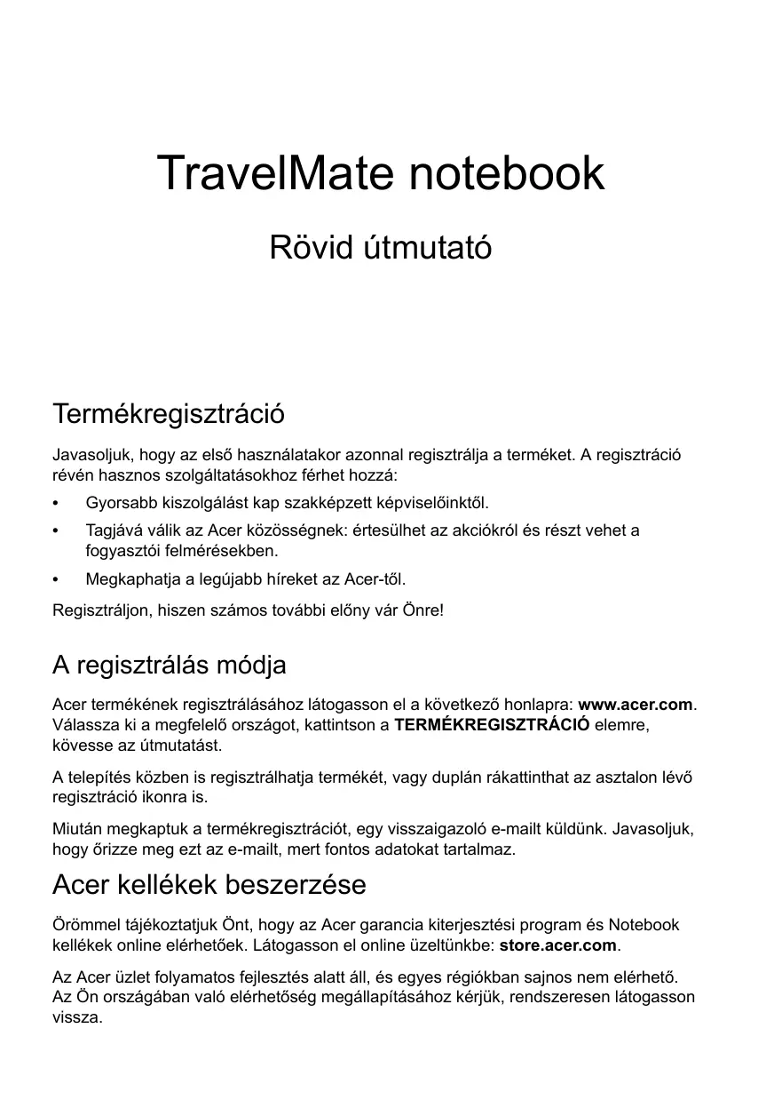 Töltse le az útmutatót a következőhöz Laptop PDF formátumban ingyenesen! Találja meg kézikönyvét TRAVELMATE P643-V - ACER és vegye vissza elektronikus eszközét a kezébe. Ezen az oldalon közzé van téve az eszköze használatához szükséges összes dokumentum. TRAVELMATE P643-V márka ACER.