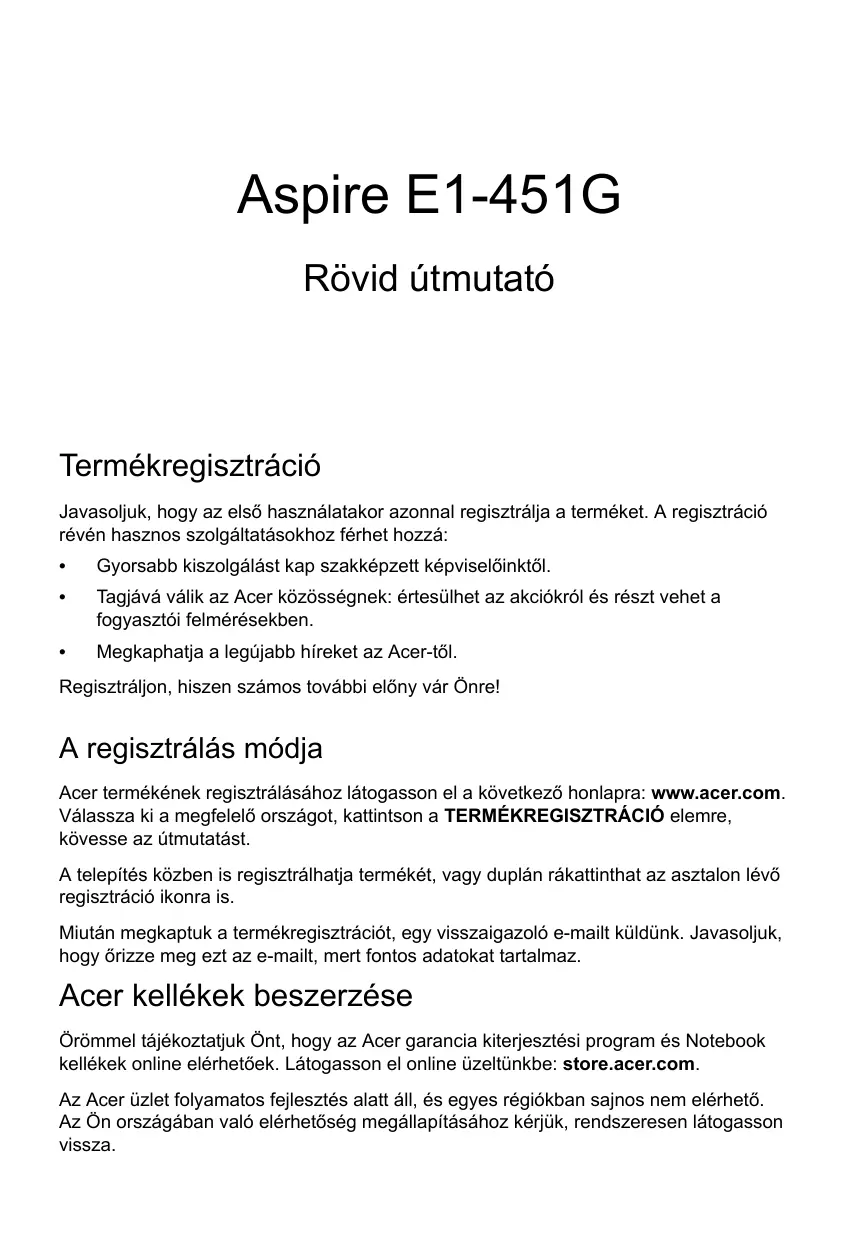 HASZNÁLATI ÚTMUTATÓ ASPIRE E1-451G ACER