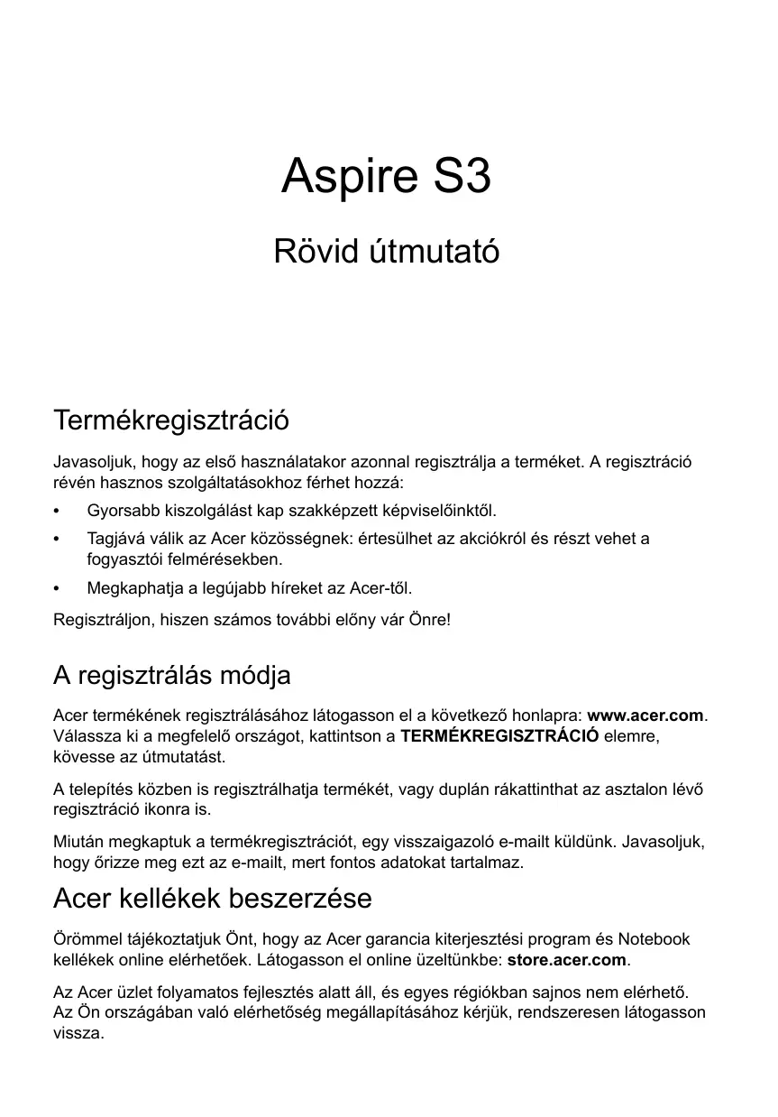 ASPIRE S3-371 - Laptop ACER - Ingyenes használati útmutató