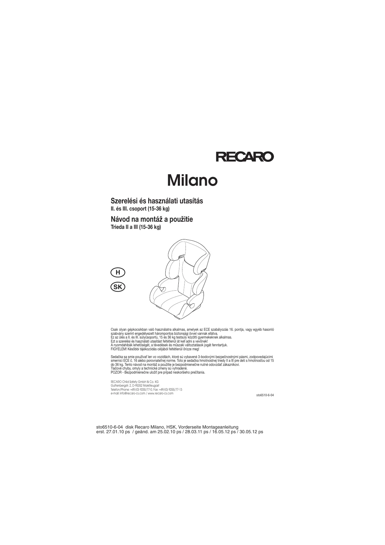 HASZNÁLATI ÚTMUTATÓ MILANO RECARO