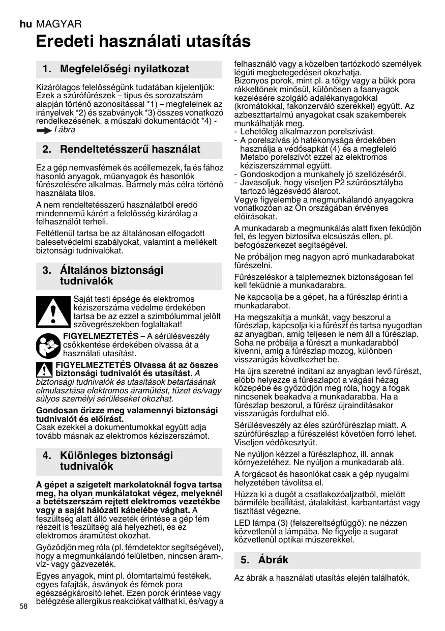 Ez a gép nemvasfémek és acélemezek, fa és fához hasonó anyagok, múanyagok és hasonlók fürészelésere alkalmas. Barmely más celra történő hasznalata tilos.