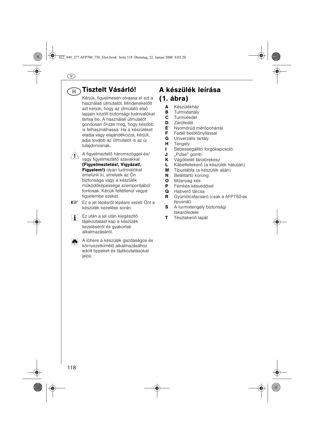 HASZNÁLATI ÚTMUTATÓ AFP700 AEG-ELECTROLUX