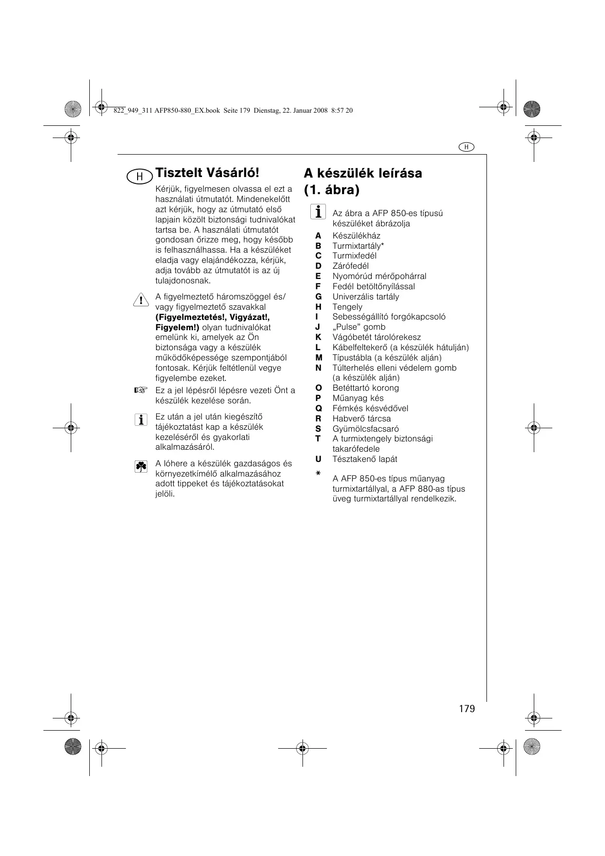 HASZNÁLATI ÚTMUTATÓ AFP850 AEG-ELECTROLUX