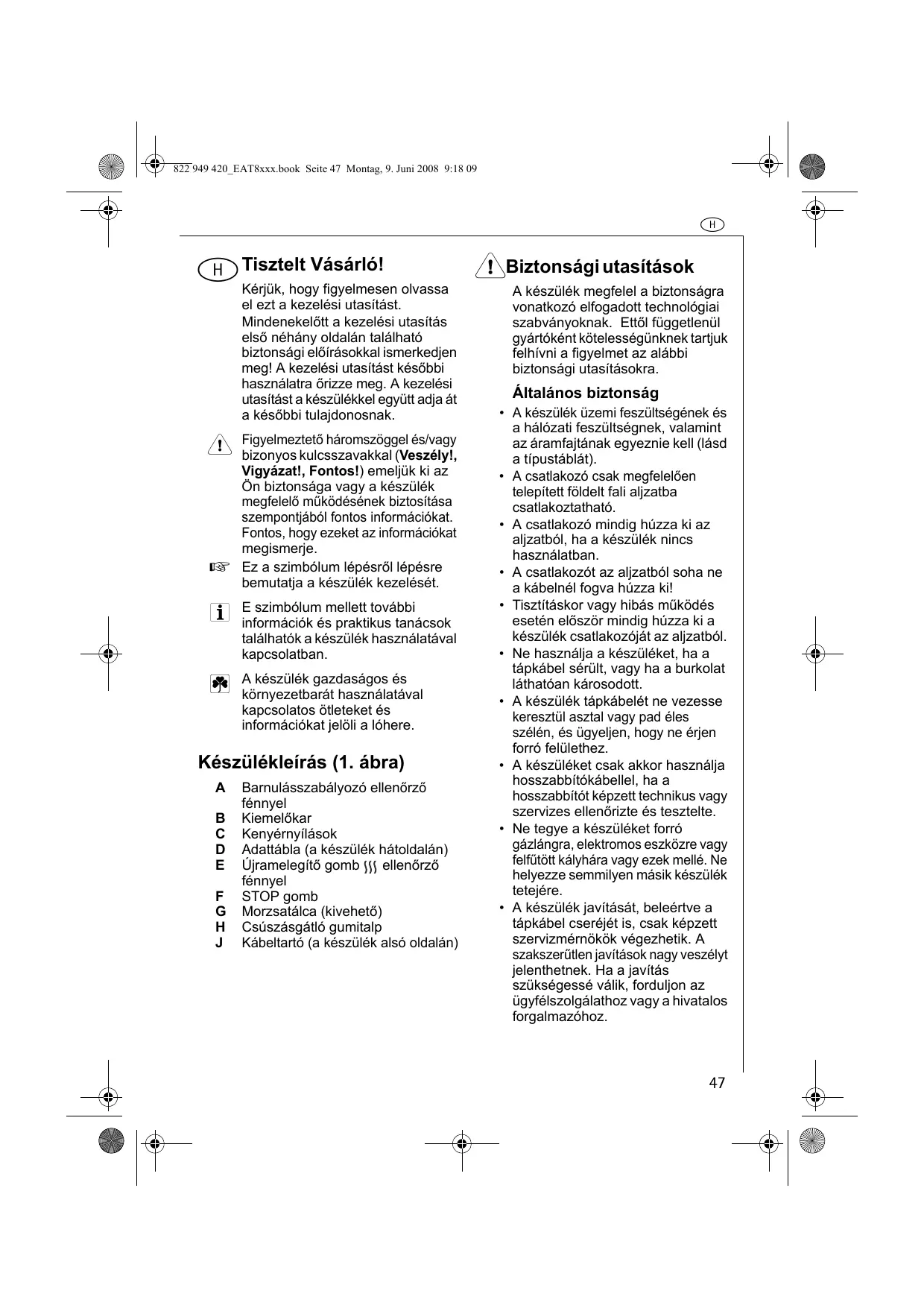 Mindenekelöttt a kezelési utasítas elso néhány oldalan talalhatóBiztonsági elóirásokkal ismerkedjer meg! A kezelési utasítast késöbbi hasznalatra orizze meg. A kezelési utasítast a készülékkel együtt adja á a késöbbi tulajdonosnak.