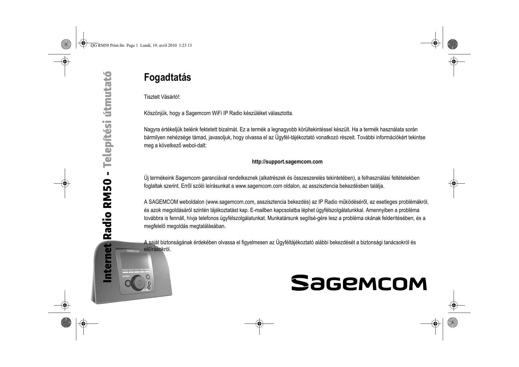 HASZNÁLATI ÚTMUTATÓ RM50 SAGEM