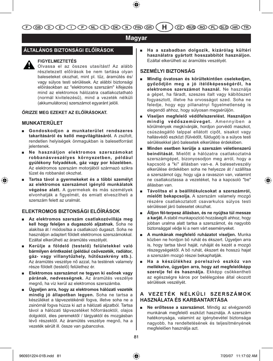 Mindig ovatosan es korultekintoen cselekedjen, gyozodjon meg a jo itelokepessegerol, ha elektromos szerszamot hasznal. Ne hasznalja a gepet, ha fardt, szeszes italt vagy kabitoszt fogyasztott, illetve ha orvossagot szed. Soha ne feledje, hogy egy pillanatny figyelmetlenseg is elegendo ahhoz, hogy sulyosan megseruljon.