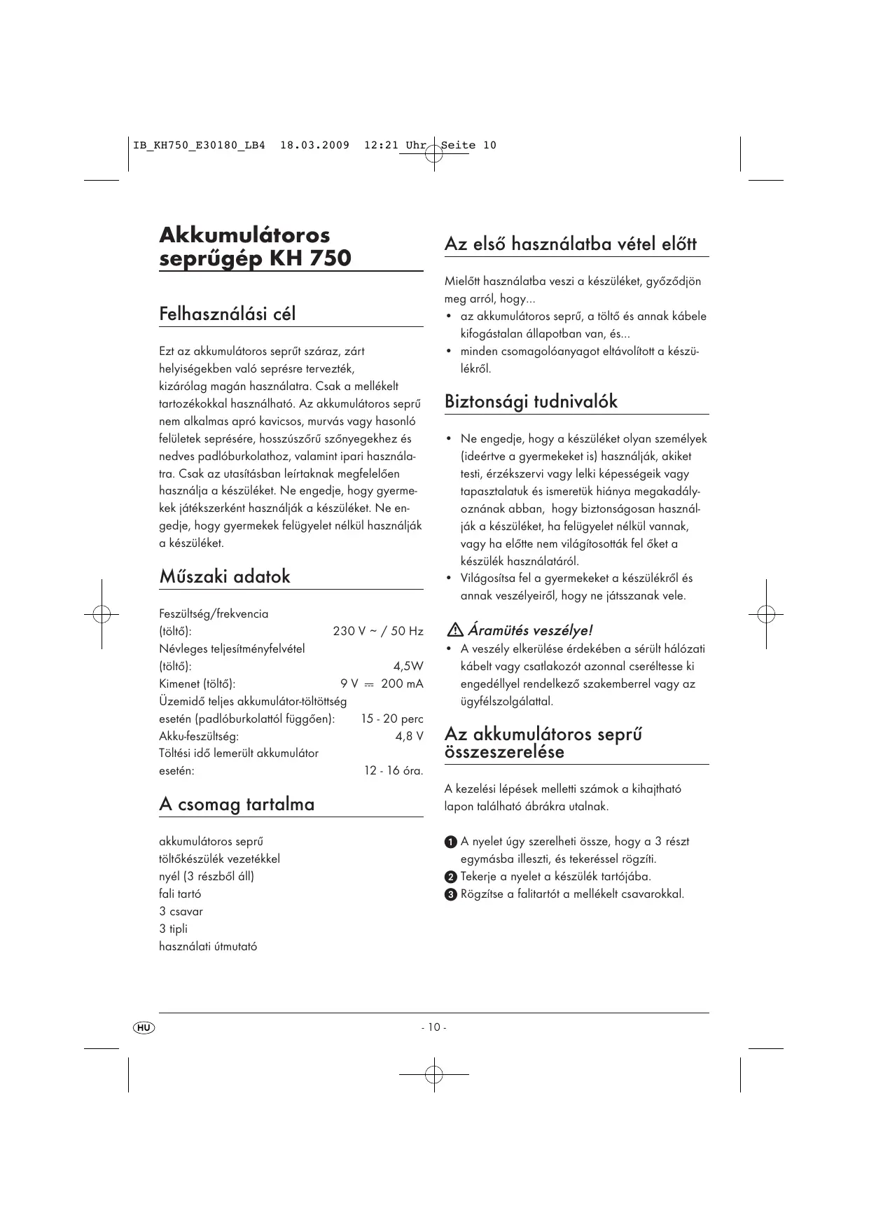 HASZNÁLATI ÚTMUTATÓ KH 750 SILVERCREST