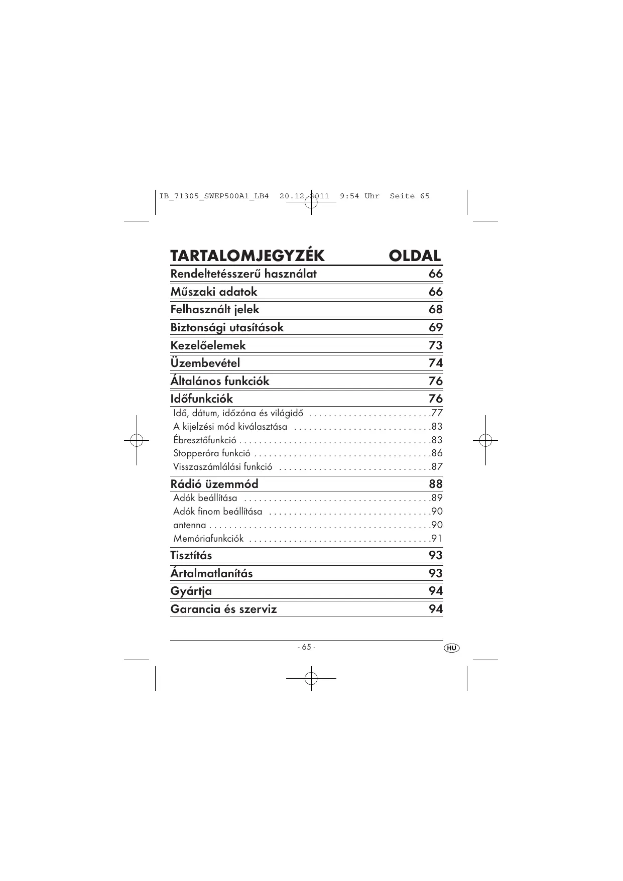 HASZNÁLATI ÚTMUTATÓ SWEP 500 A1 SILVERCREST
