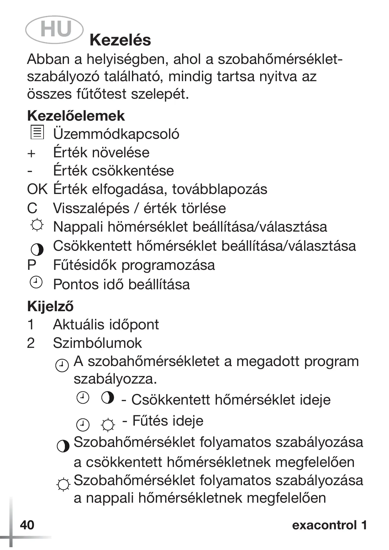 HASZNÁLATI ÚTMUTATÓ EXACONTROL 1 SAUNIER DUVAL