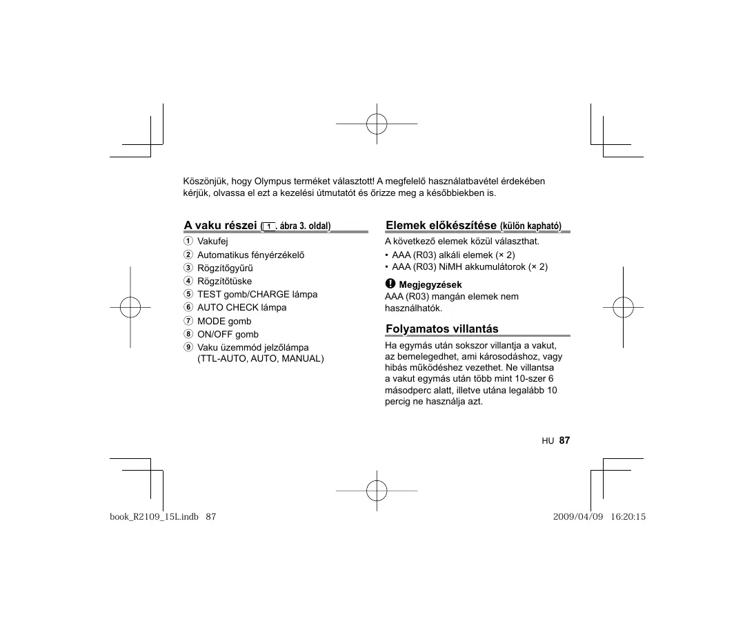 HASZNÁLATI ÚTMUTATÓ FL-14 OLYMPUS