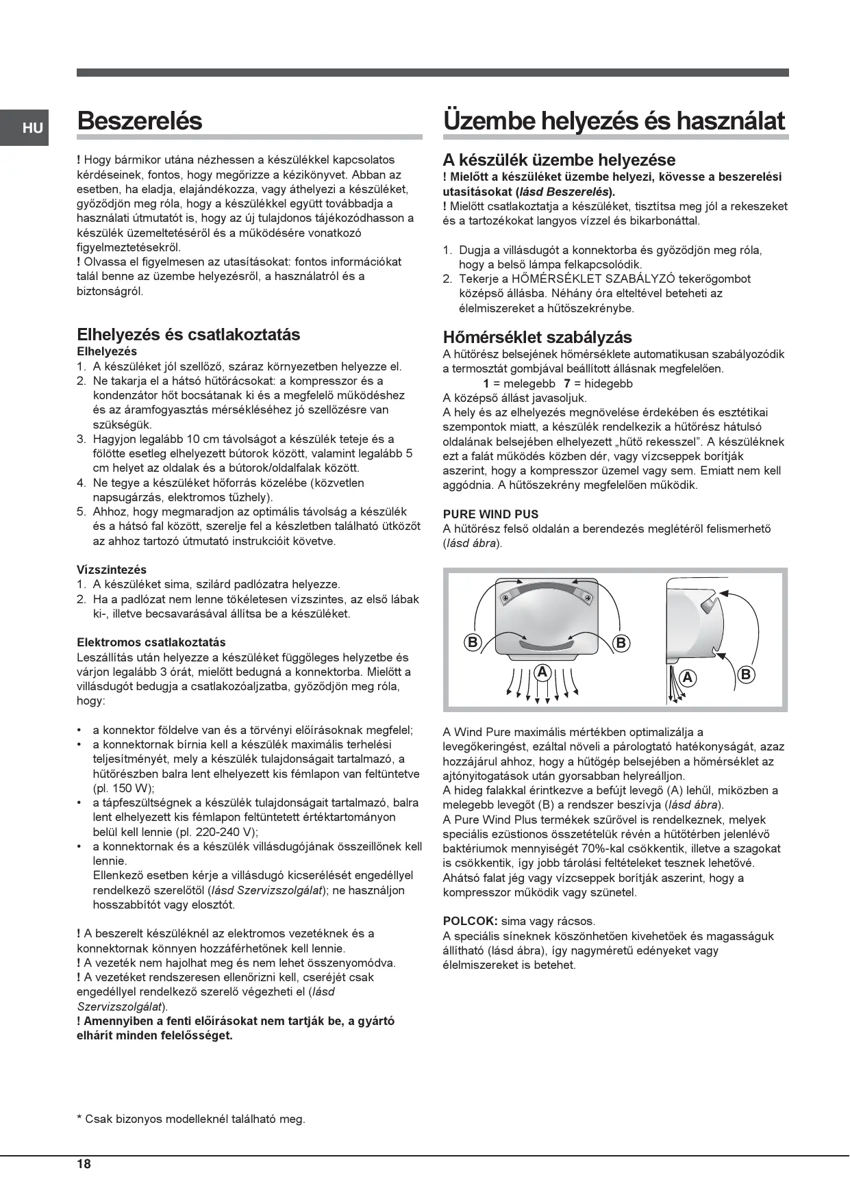 À Wind Pure maximälis mértékben optimalizälja a levegékeringést, ezältal nôveli a pérologtaté hatékonysägät, azaz hozzéjärul ahhoz, hogy a hütégép belsejében a hémérséklet az ajtényitogatäsok utän gyorsabban helyreälljon