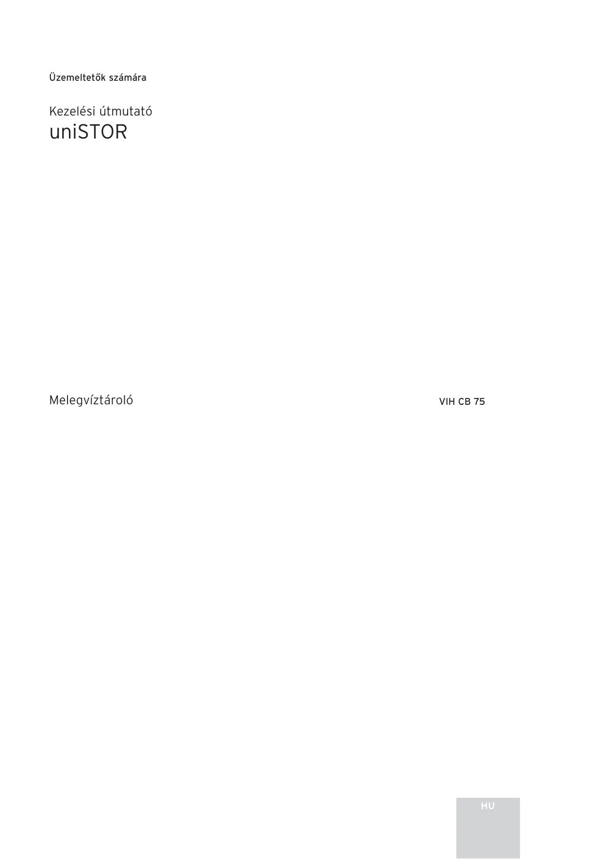 Biztonsági szelep és kifúvató-vezeték A tárolóban lévő használati melegvíz minden felfűtésekor megnő a víz térfogata, ezért a beszerelés helyén minden tárolót egy biztonsági szeleppel és egy kifúvató-vezetékkel kell felszerelni. Veszély! Forró víz okozta leforrázásveszély áll fenn! Felfűtés közben forró víz lép ki a kifúvatóvezetékből. A kifúvató-vezetéket olyan alkalmas lefolyóhelyre kell vezetni, ahol személyek veszélyeztetése kizárt. Soha ne zárja el a biztonsági szelepet, ill. a kifúvató-vezetéket. Ellenkező esetben nem zárható ki a tároló meghibásodása! Veszély! Forró víz okozta leforrázásveszély áll fenn! A VIH CB 75 típusú tárolóknál a vízkivételi helyeken a 85 °C-ot is elérheti a kifolyási hőmérséklet. Fagyveszély Ha a tároló hosszabb időn keresztül fűtetlen helyiségben marad üzemen kívül (pl. téli üdülés alatt), akkor a tárolót teljesen ki kell üríteni. Változtatások A tárolón vagy a szabályozón, a víz tápvezetékén, a tárolóvíz kifúvató-vezetékén és biztonsági szelepén semmit nem szabad változtatnia. Tömítetlenségek Ha használati melegvíz vezetékrendszerben, a tároló és a vízkivételi hely között tömítetlenség áll fenn, akkor a biztonsági szerelvénycsoporton zárja el a hidegvízelzárószelepet a tároló és a főcsatlakozás között és egy felhatalmazott szakcéggel szüntettesse meg a tömítetlenséget.