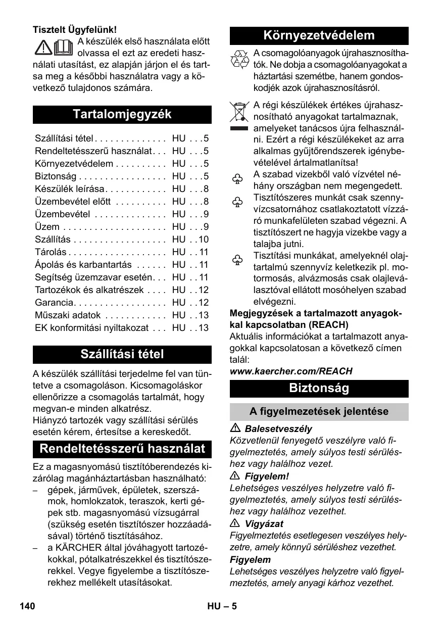HASZNÁLATI ÚTMUTATÓ K4 COMPACT HOME KARCHER