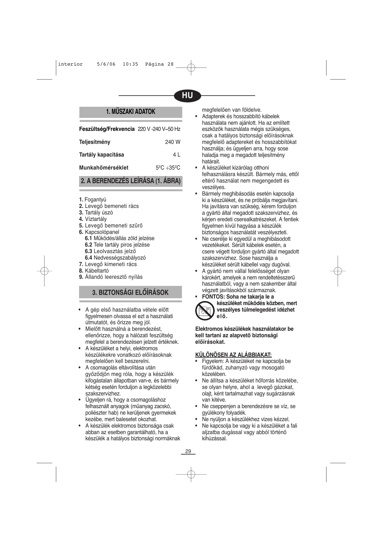 interior 5/6/06 10:35 Página 29 bekapcsolás, és akkor alszik el, amikor a berendezés leáll.
