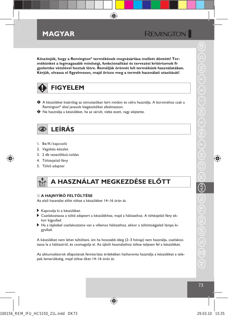 HASZNÁLATI ÚTMUTATÓ HC5750 REMINGTON