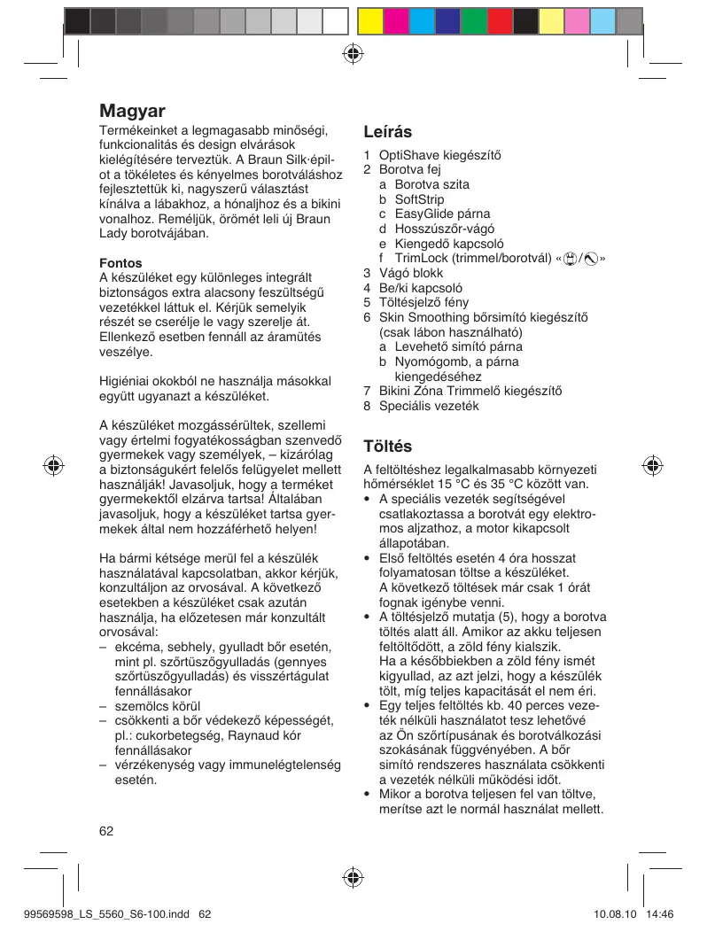Ha bârmi kétsége merül fel a készülék hasznlatval kapcsolatban, akkor kérjük, konzultéljon az orvosäval. À kôvetkezô esetekben a készüléket csak azutän hasznälja, ha elôzetesen mâr konzultält orvosäval: — ekcéma, sebhely, gyulladt bér esetén, mint pl. szôrtüszégyulladäs (gennyes szôrtüszôgyulladäs) és visszérägulat fennällésakor