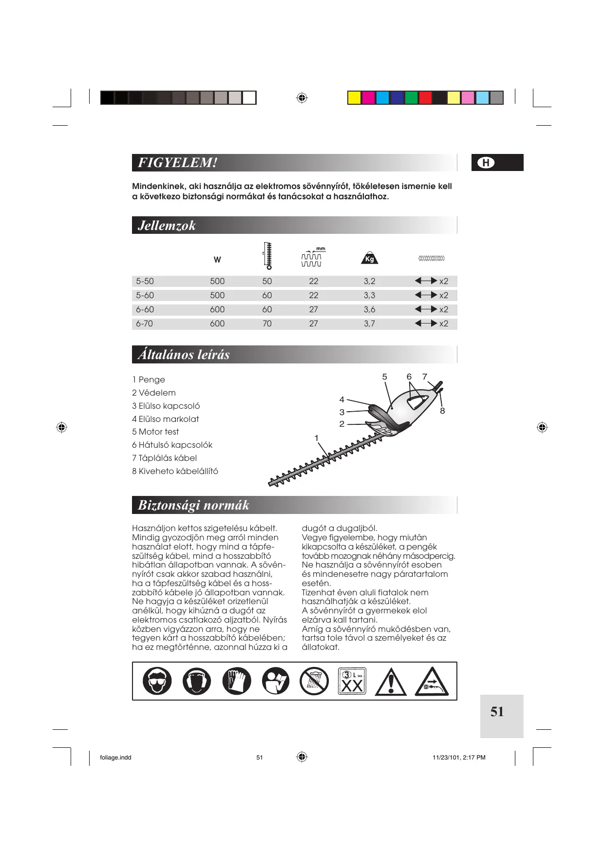 FOLIAGE 6-70 - Elektromos sövénynyírók MCCULLOCH - Ingyenes használati útmutató