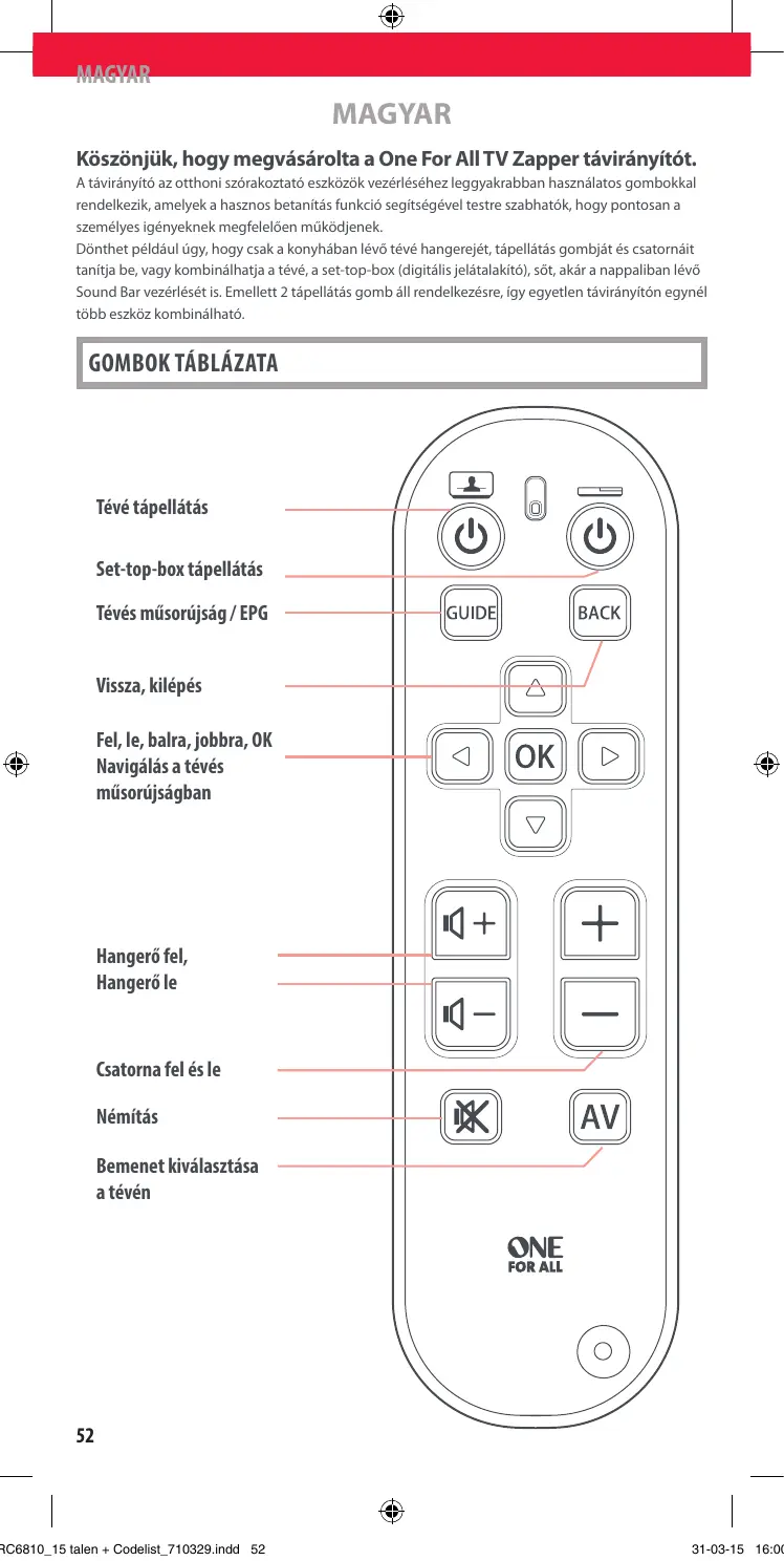 HASZNÁLATI ÚTMUTATÓ URC6810 ONE FOR ALL