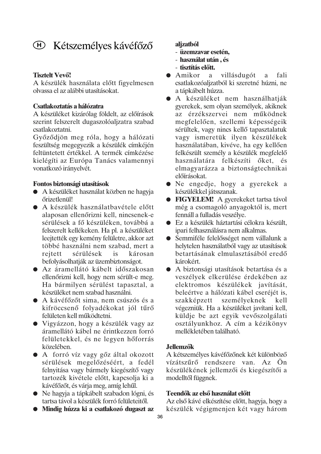 Tisztelt Vevô! A készülék hasznälata elôtt figyelmesen olvassa el az aläbbi utasitäsokat.
