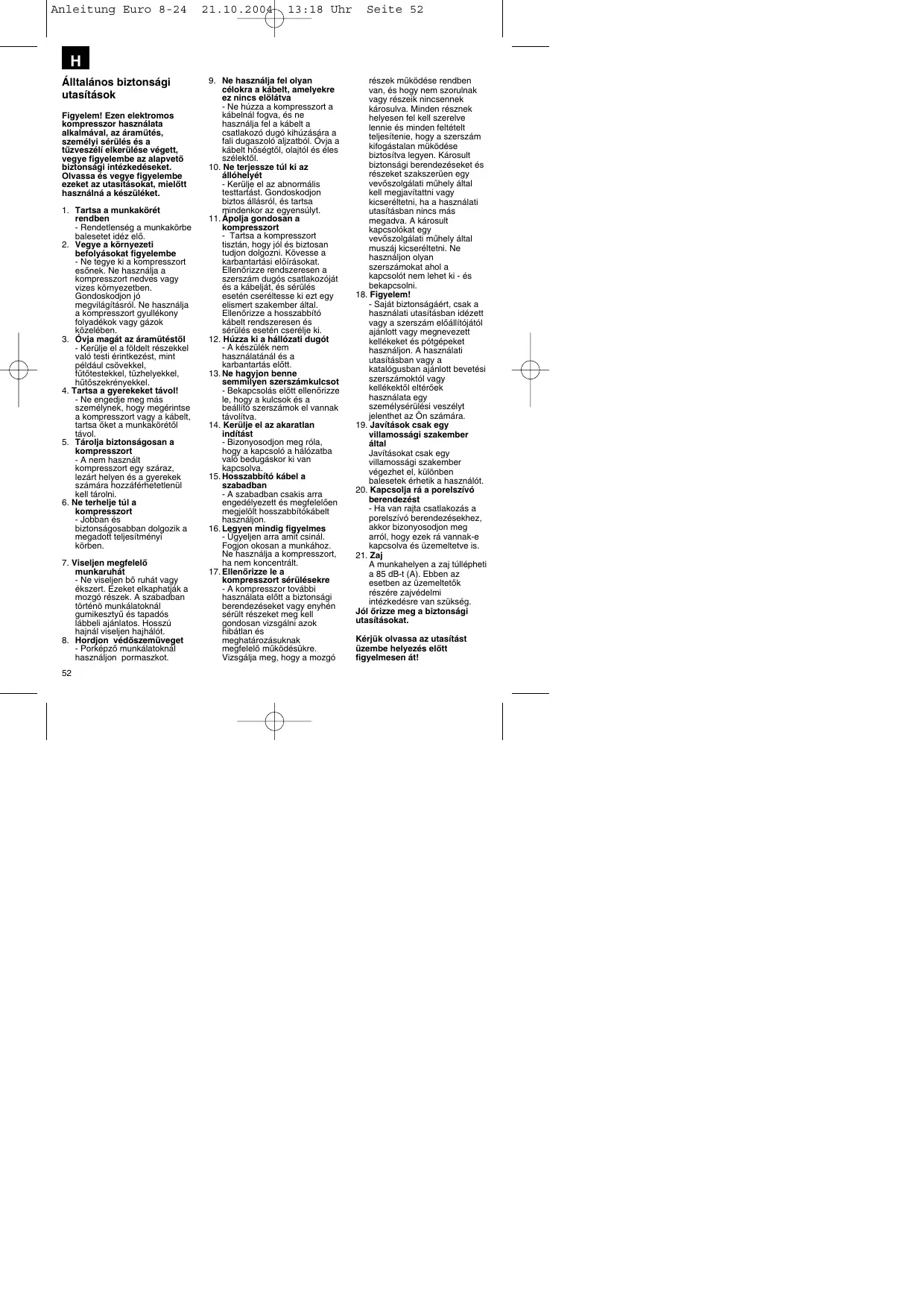 HASZNÁLATI ÚTMUTATÓ EURO 24 EINHELL