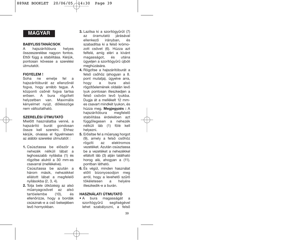 HASZNÁLATI ÚTMUTATÓ 889AE, 889AE BABYLISS