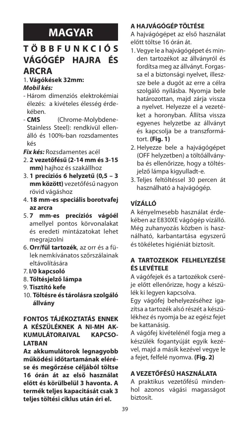használható a hajvágógép. MAGYAR