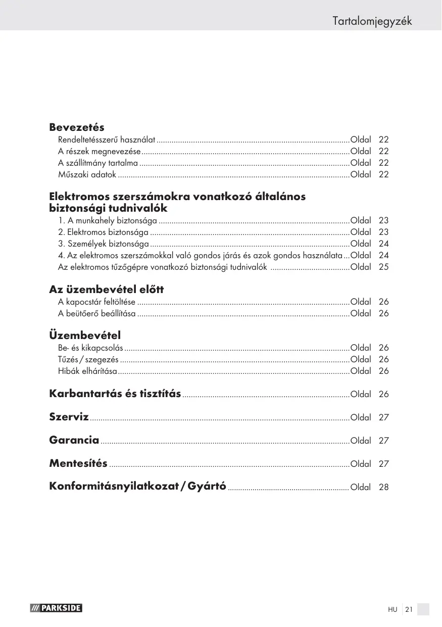 HASZNÁLATI ÚTMUTATÓ PET 25 A1 ELECTRIC NAILER-STAPLER PARKSIDE
