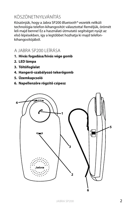 A JABRA SP200 LEÍRÁSA 1. 2. 3. 4. 5. 6.