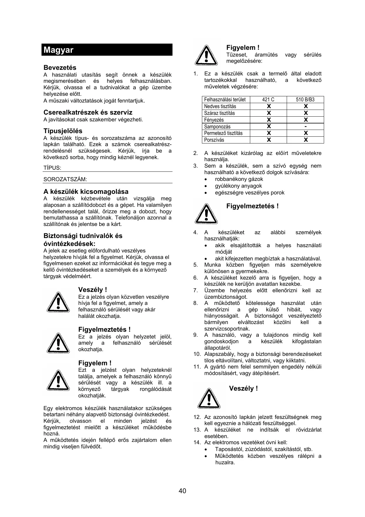 HASZNÁLATI ÚTMUTATÓ 421 C-510 B NILFISK