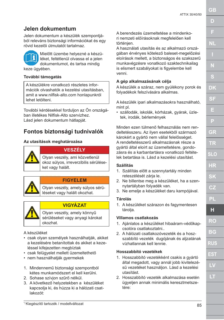 HASZNÁLATI ÚTMUTATÓ ATTIX 30 BATT NILFISK