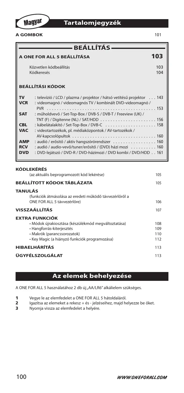 Téléchargez la notice de votre Univerzális távirányító au format PDF gratuitement ! Retrouvez votre notice URC 7950 - ONEFORALL et reprennez votre appareil électronique en main. Sur cette page sont publiés tous les documents nécessaires à l'utilisation de votre appareil URC 7950 de la marque ONEFORALL.