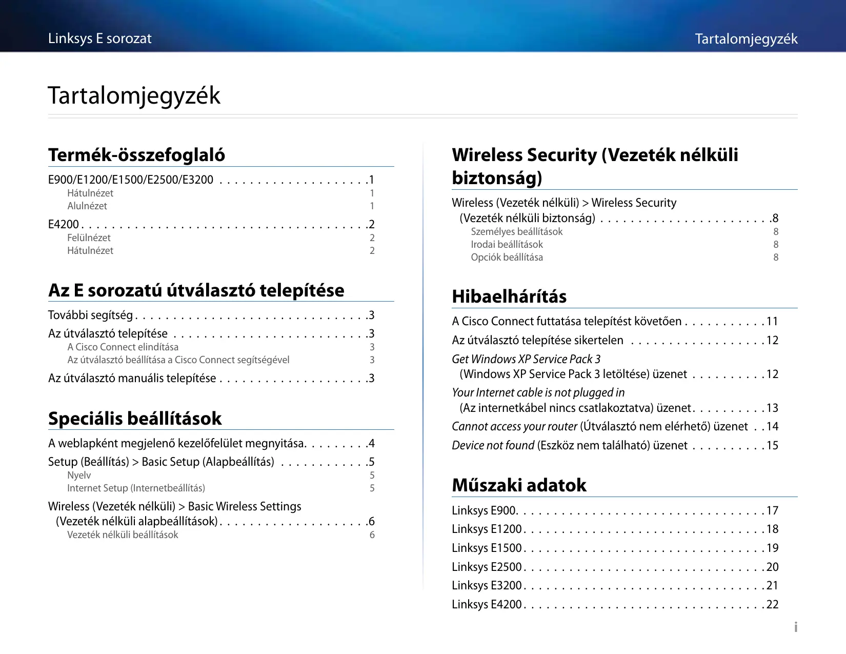Téléchargez la notice de votre Vezeték nélküli router au format PDF gratuitement ! Retrouvez votre notice E2500 - LINKSYS et reprennez votre appareil électronique en main. Sur cette page sont publiés tous les documents nécessaires à l'utilisation de votre appareil E2500 de la marque LINKSYS.
