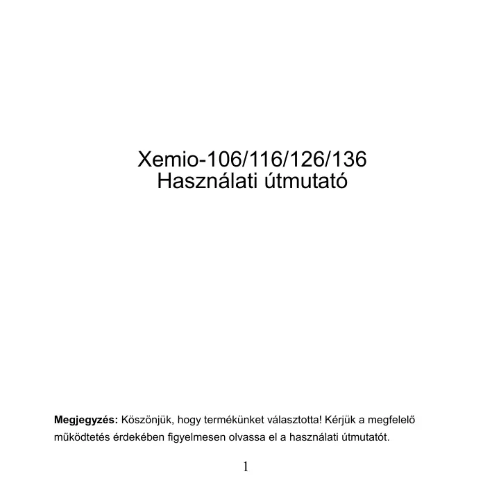 Xemio-106/116/126/136 Használati útmutató Megjegyzés: Köszönjük, hogy termékünket választotta! Kérjük a megfelelő működtetés érdekében figyelmesen olvassa el a használati útmutatót.
