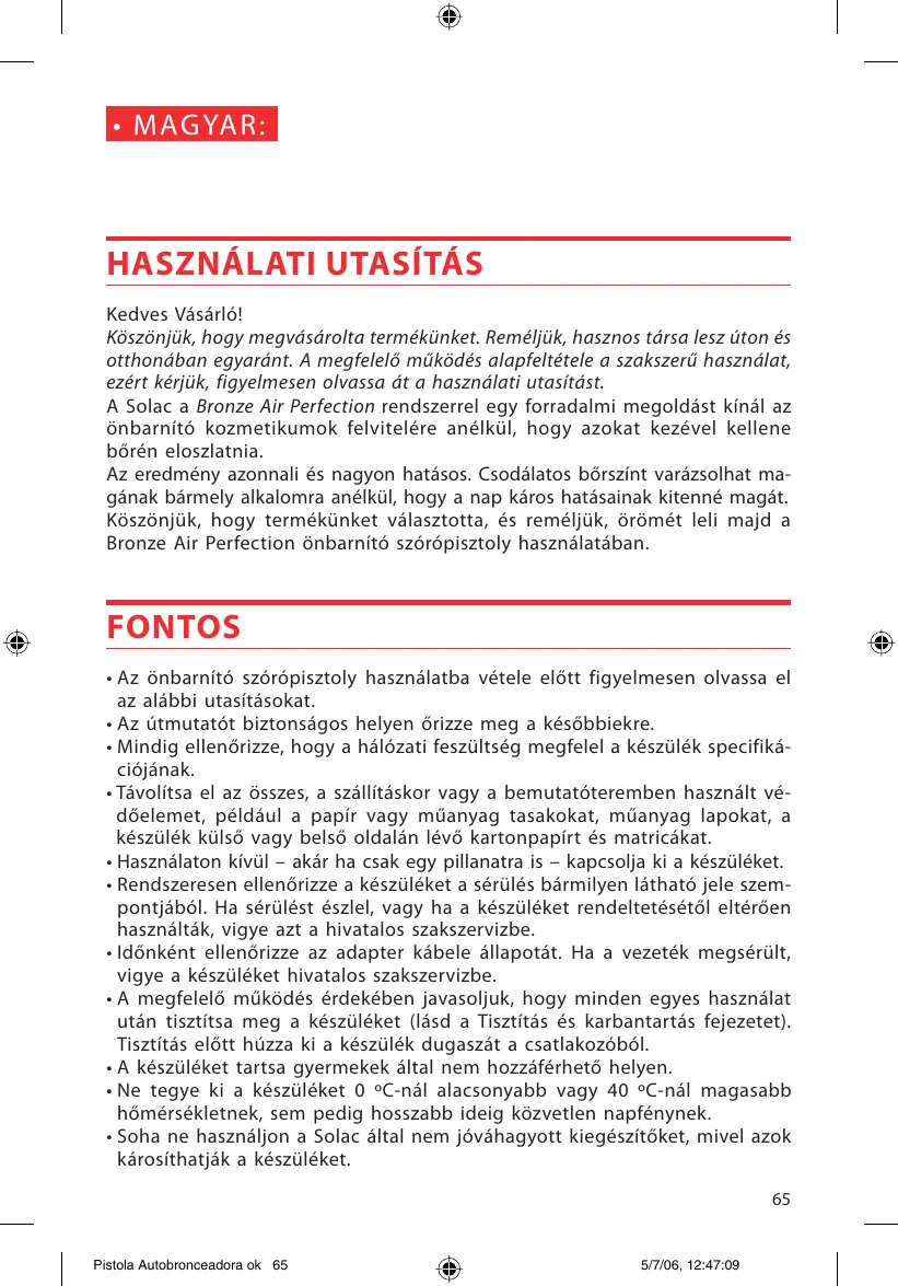- Az onbarnitó szórpisztoly használatba vetele elótt figyelmesen olvassa el az alábbi utasításokat.