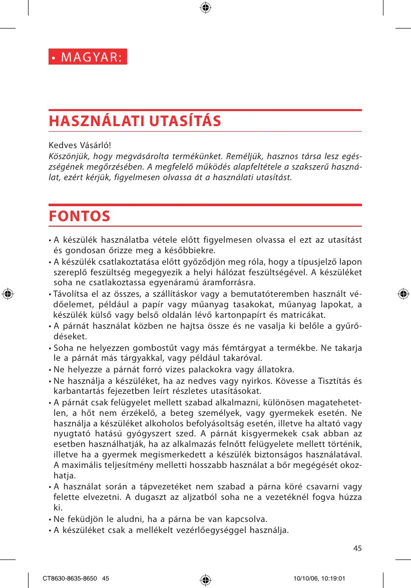 Köszönjuk, hovy megvásárolta termékunket. Reméljuk, hasznos társa lesz egészségenek megörzésében. A megfelelo mukódes alapfeltetele a szakszeru hasznalat, ezert kérjuk, figyelmesen olvassa at a hasznalati utasitást.