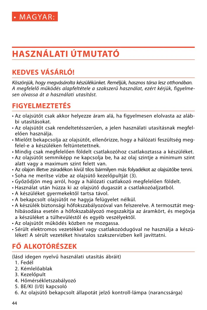 - Az olajsütőt csak rendeltetésszerűen, a jelen használati utasításnak megfelelően használja.