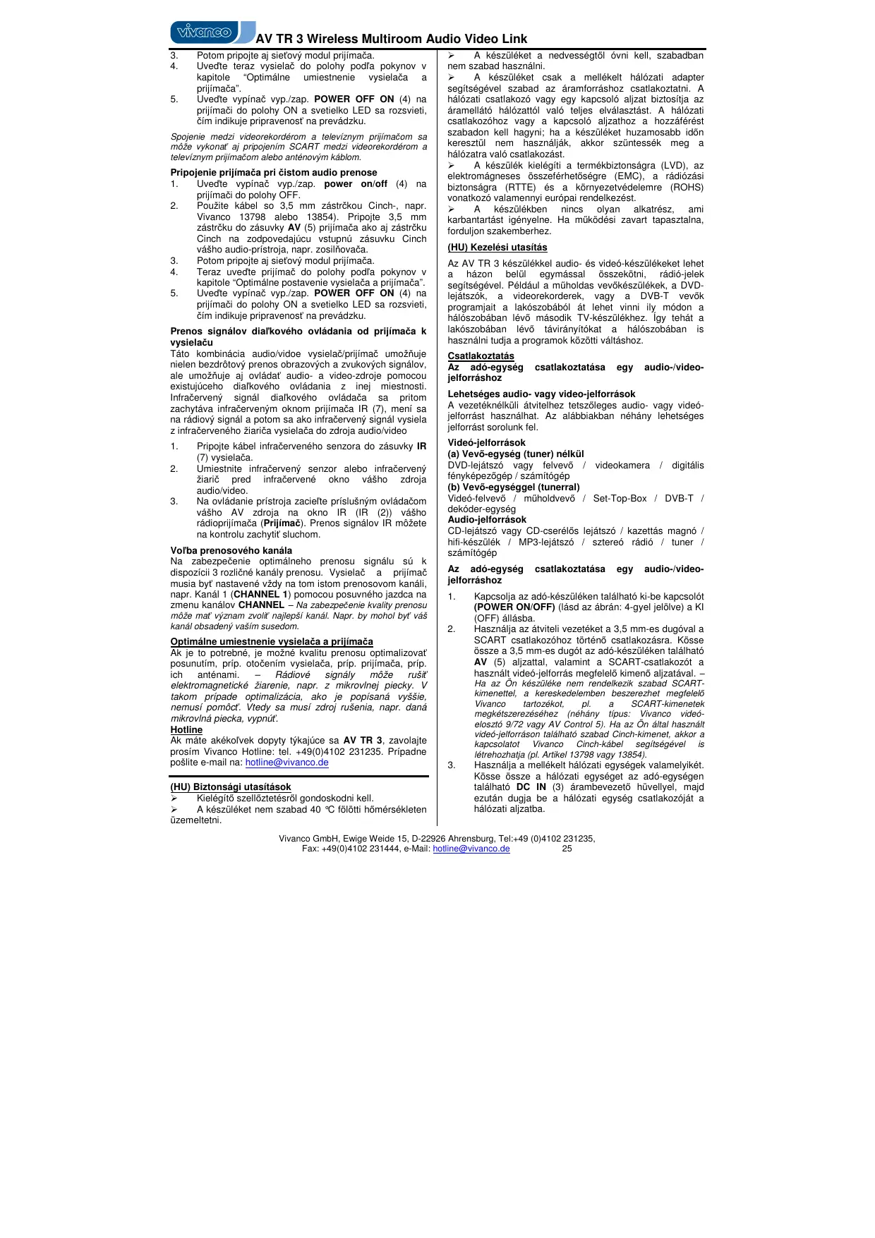 HASZNÁLATI ÚTMUTATÓ AV TRANSMITTERRECEIVER SET WITH IR FEEDBACK CHANNEL VIVANCO