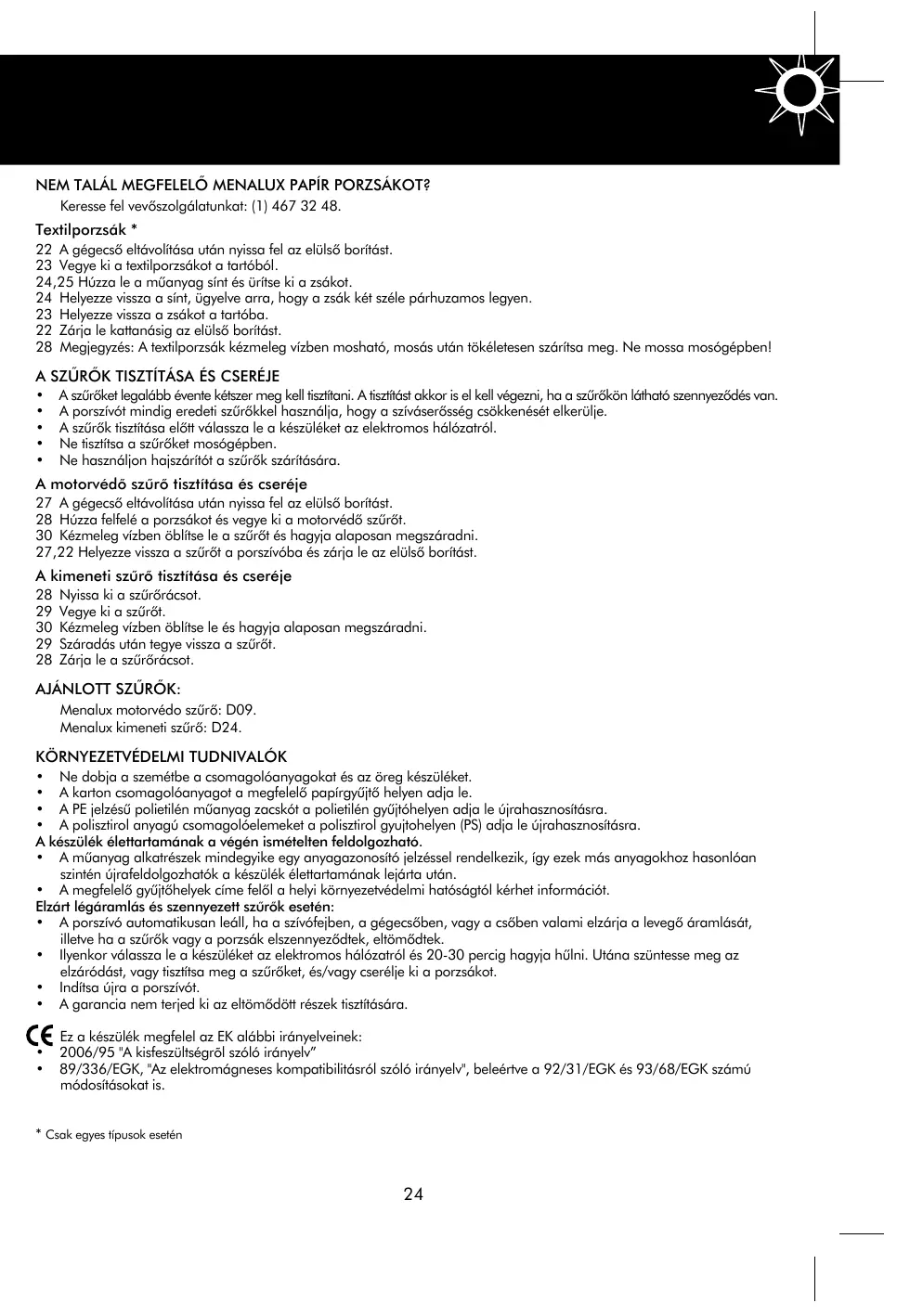 28 Megjegyzés: A textilporzák kézmeleg vizben mosható, mosás után tókeletesen szárítsa meg. Ne mossa mosógepben!