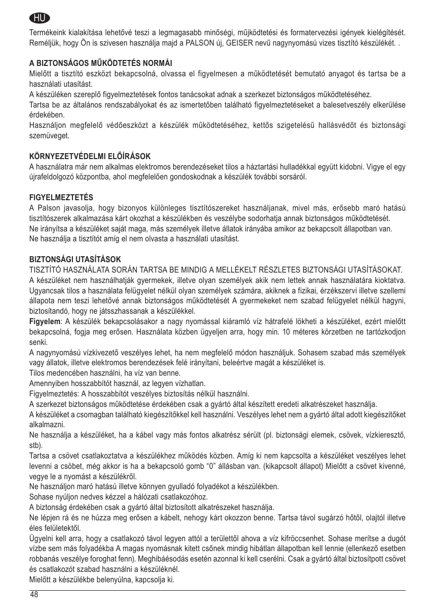 Töltse le az útmutatót a következőhöz Magasnyomású mosó PDF formátumban ingyenesen! Találja meg kézikönyvét GEISER - PALSON és vegye vissza elektronikus eszközét a kezébe. Ezen az oldalon közzé van téve az eszköze használatához szükséges összes dokumentum. GEISER márka PALSON.