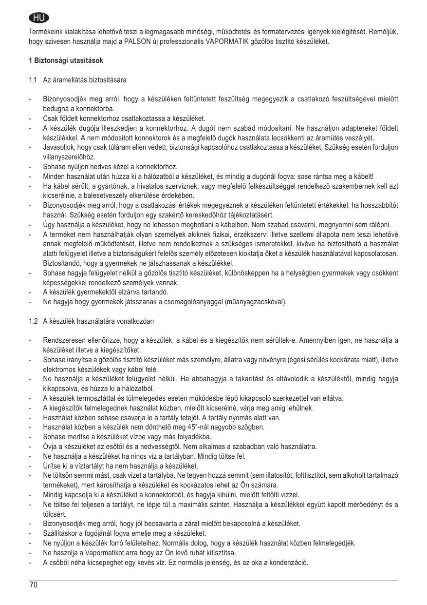 VAPORMATIK - Gőztisztító PALSON - Ingyenes használati útmutató