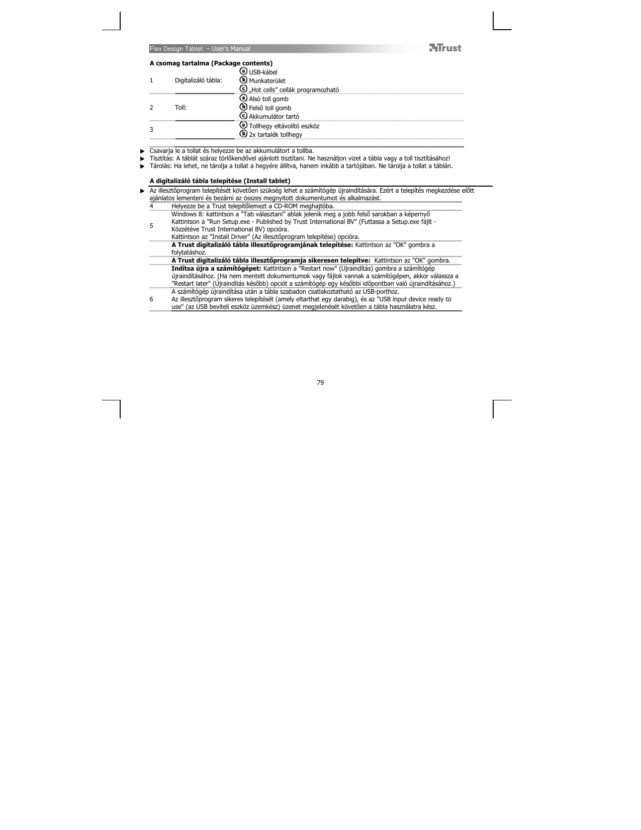 Találja meg az eszköz kézikönyvét ingyenesen FLEX DESIGN TABLET TRUST PDF formátumban.