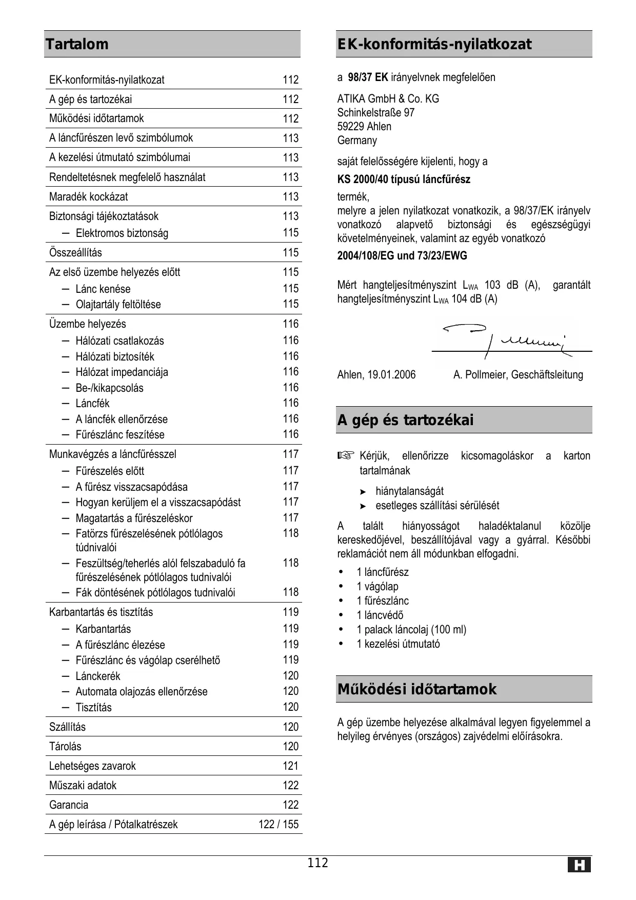 KS 2000-40 - Láncfűrész ATIKA - Ingyenes használati útmutató