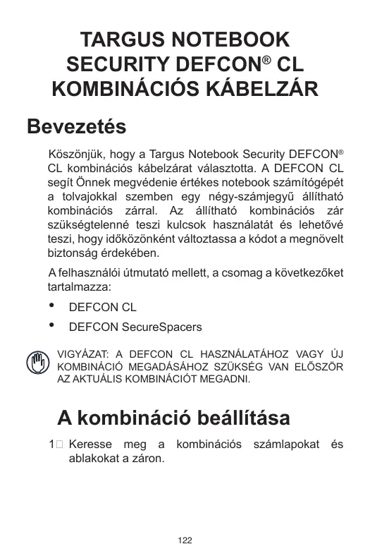HASZNÁLATI ÚTMUTATÓ NOTEBOOK SECURITY DEFCON CL TARGUS
